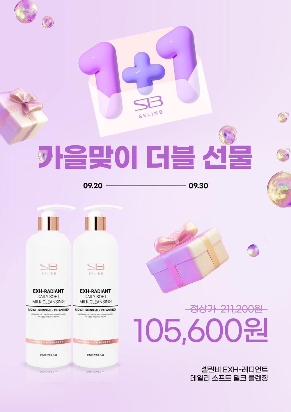 [9월 1+1 프로모션] 셀린비 EXH-레디언트 데일리 소프트 밀크클렌징 500ml
