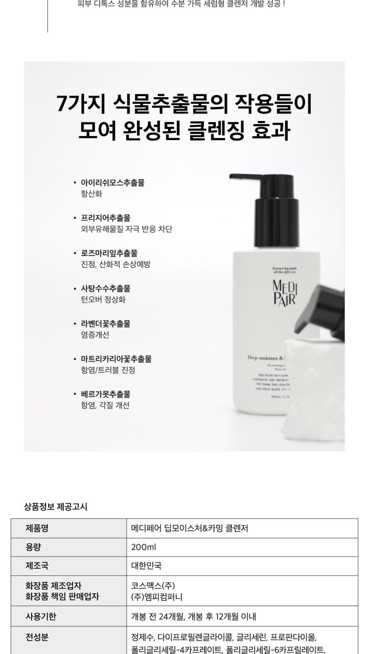 메디페어 딥모이스쳐 앤 카밍 클렌저 200ml + 예쁘데 프리미엄 샘플