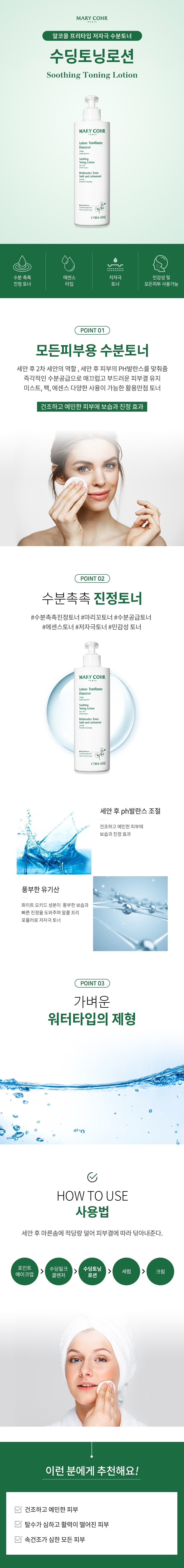 마리꼬 수딩토닝로션(토너) MARY COHR 알코올프리 진정 보습 에스테틱 토너 500ml